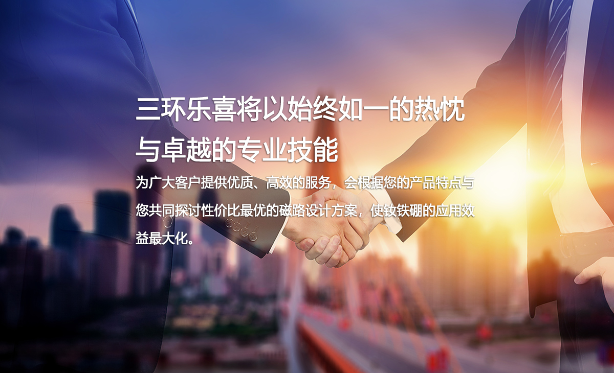 三環樂喜新材料有限公司,成立于1990年,控股股東中科三環(股票代碼:000970)為中國稀土永磁材料產業的代表企業、全球特大的釹鐵硼永磁體制造商之一。自成立以來,公司一直致力于研發、生產、銷售中、高品質燒結釹鐵硼,年生產能力超過6000噸,是中科三環的重要生產基地。